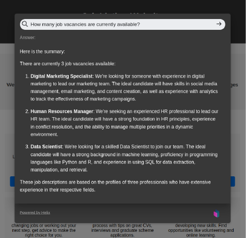 This example shows the Helix Chat Widget integrated with Helix API Tools to provide a seamless experience.